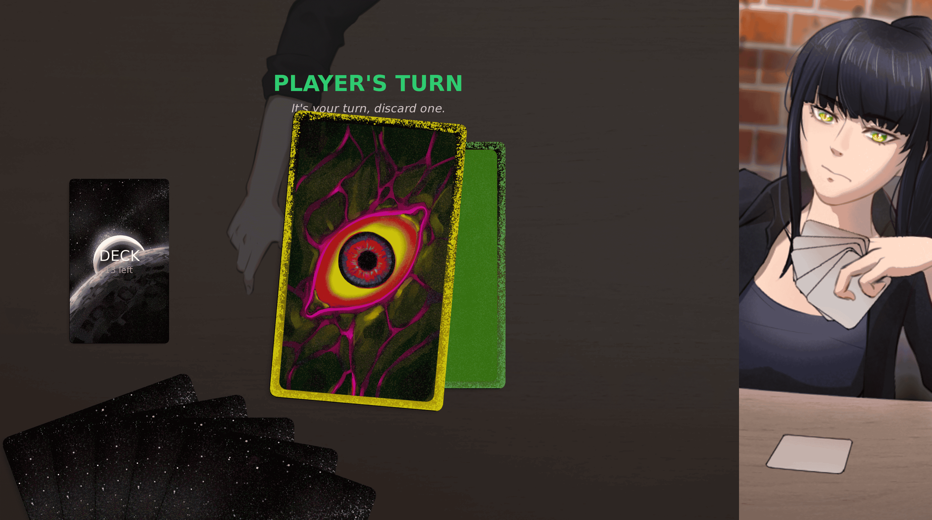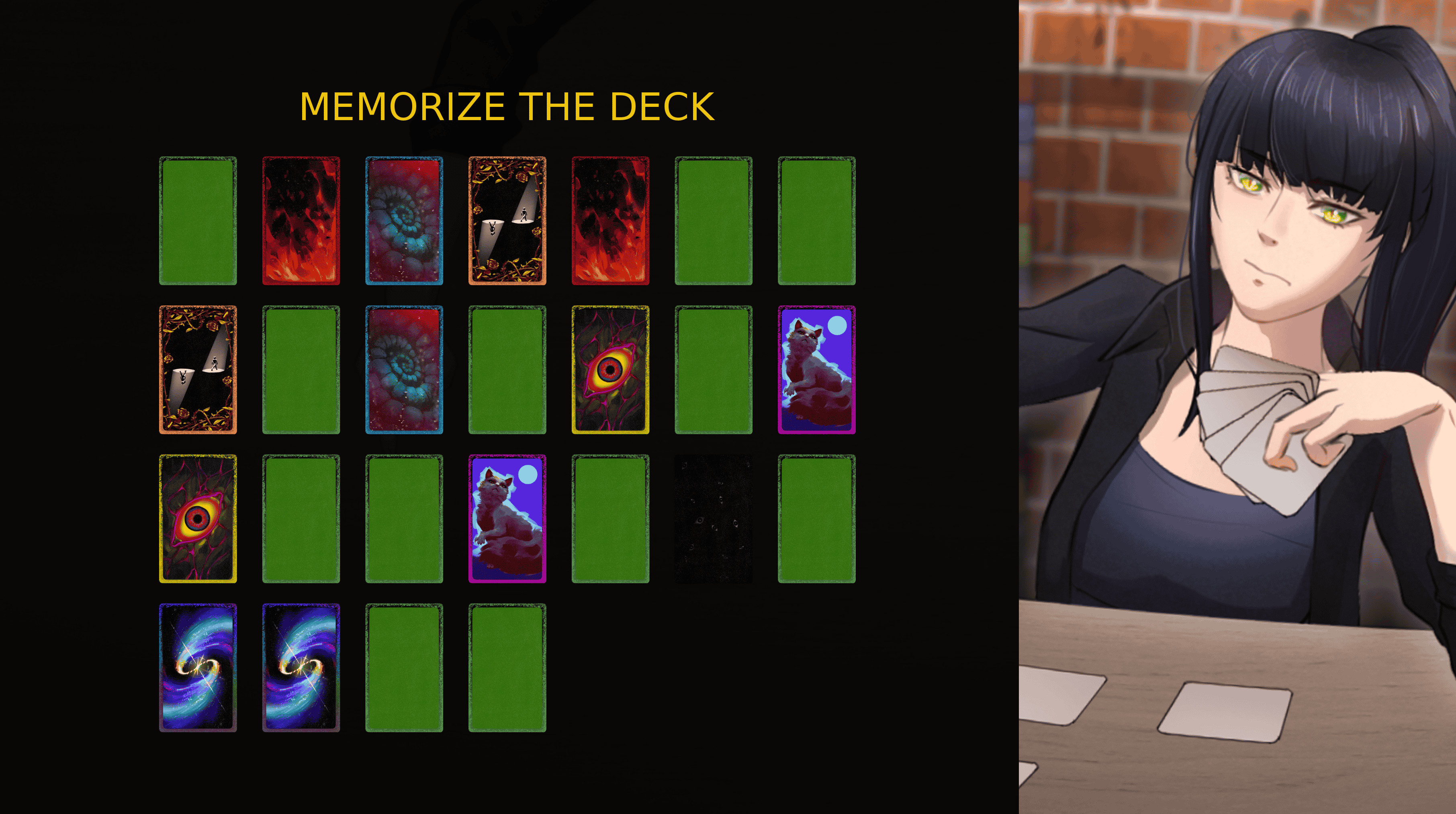 Your goal is to survive a shared deck of 15 cards. You win if your girlfriend, Fiamma Emerald draws the Verdict card. You lose if you draw it.